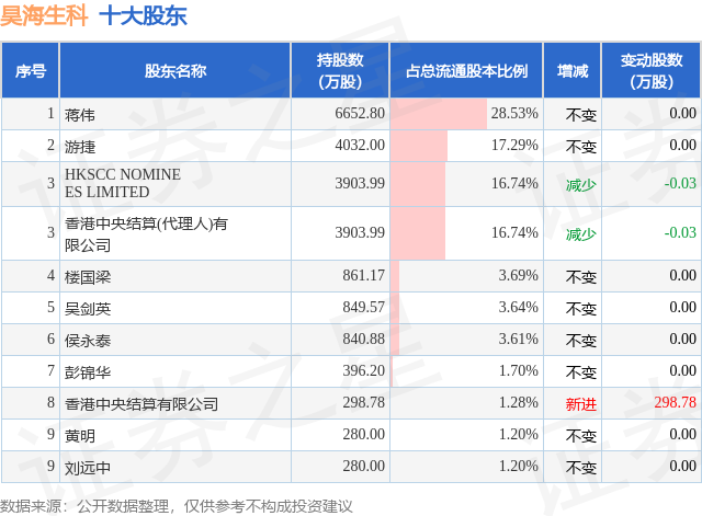 根据昊海生科2025年中报公布的十大股东详情如下: