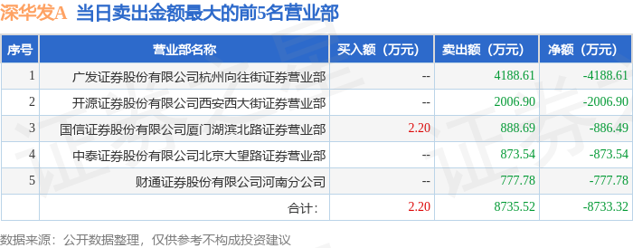证券之星消息,沪深交易所2025年9月29日公布的交易公开信息显示,深华发A(000020)因日跌幅偏离值达到7%的前5只证券登上龙虎榜。此次是近5个交易日内第2次上榜。