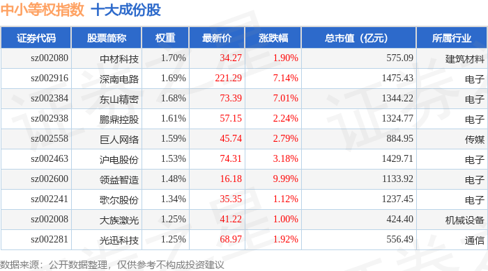 证券之星消息,9月29日,中小等权(399634)指数报收于4281.74点,涨2.06%,成交1743.76亿元,换手率2.06%。当日该指数成份股中,上涨的有76家,天赐材料以10.01%的涨幅领涨,下跌的有21家,荣盛石化以3.24%的跌幅领跌。