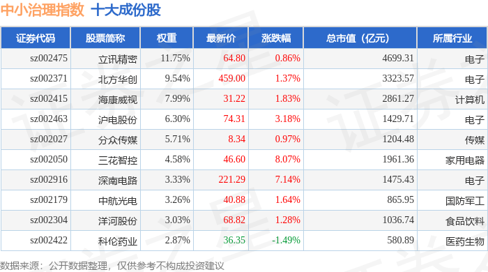 证券之星消息,9月29日,中小治理(399650)指数报收于2708.84点,涨2.12%,成交716.08亿元,换手率1.89%。当日该指数成份股中,上涨的有39家,盈趣科技以10.03%的涨幅领涨,下跌的有11家,新宝股份以1.81%的跌幅领跌。