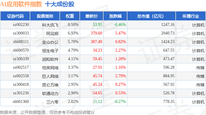 资金流向方面,AI应用软件(980107)指数成份股当日主力资金净流入合计3299.85万元,游资资金净流出合计3.8亿元,散户资金净流入合计3.47亿元。成份股资金流向详情见下表: