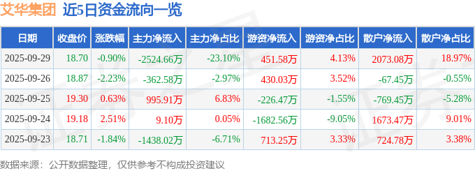 证券之星消息,截至2025年9月29日收盘,艾华集团(603989)报收于18.7元,下跌0.9%,换手率1.46%,成交量5.84万手,成交额1.09亿元。