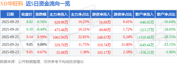 9月29日的资金流向数据方面,主力资金净流入629.96万元,占总成交额16.23%,游资资金净流入16.09万元,占总成交额0.41%,散户资金净流出646.05万元,占总成交额16.64%。