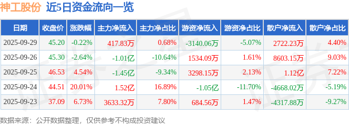 证券之星消息,截至2025年9月29日收盘,神工股份(688233)报收于45.2元,下跌0.22%,换手率8.04%,成交量13.69万手,成交额6.19亿元。