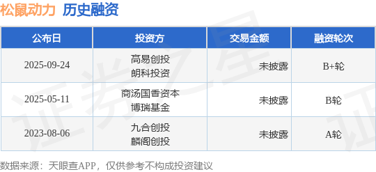 证券之星消息,根据天眼查APP于9月24日公布的信息整理,深圳松鼠动力有限责任公司B+轮融资,融资额未披露,参与投资的机构包括高易创投,朗科投资。