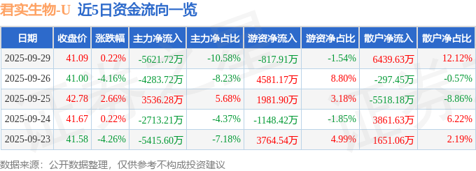 证券之星消息,截至2025年9月29日收盘,君实生物(688180)报收于41.09元,上涨0.22%,换手率1.71%,成交量13.1万手,成交额5.31亿元。