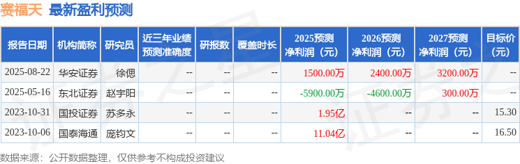 以下是详细的盈利预测信息: