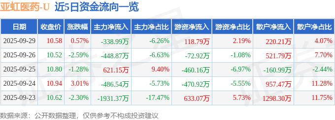 证券之星消息,截至2025年9月29日收盘,亚虹医药(688176)报收于10.58元,上涨0.57%,换手率1.18%,成交量5.14万手,成交额5415.6万元。