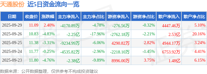 证券之星消息,截至2025年9月29日收盘,天通股份(600330)报收于11.09元,上涨2.4%,换手率6.36%,成交量78.45万手,成交额8.72亿元。