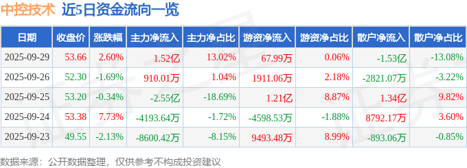 证券之星消息,截至2025年9月29日收盘,中控技术(688777)报收于53.66元,上涨2.6%,换手率2.8%,成交量21.93万手,成交额11.68亿元。