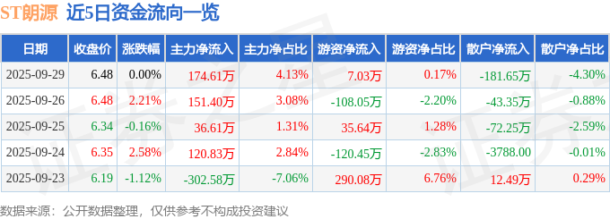证券之星消息,截至2025年9月29日收盘,ST朗源(300175)报收于6.48元,上涨0.0%,换手率1.38%,成交量6.5万手,成交额4226.62万元。