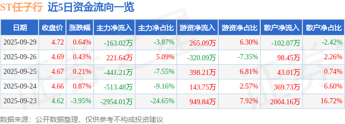 证券之星消息,截至2025年9月29日收盘,ST任子行(300311)报收于4.72元,上涨0.64%,换手率1.66%,成交量8.91万手,成交额4210.58万元。