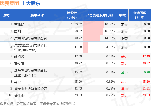 根据因赛集团2025年中报公布的十大股东详情如下: