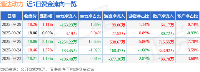 证券之星消息,截至2025年9月29日收盘,通达动力(002576)报收于18.26元,上涨1.11%,换手率2.94%,成交量4.77万手,成交额8675.91万元。