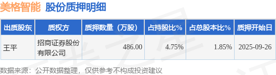 证券之星消息,美格智能(002881)9月30日公开信息显示,股东王平向招商证券股份有限公司合计质押486.0万股,占总股本1.85%。质押详情见下表: