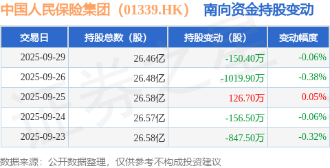 证券之星消息,9月29日南向资金减持150.4万股中国人民保险集团(01339.HK)。近5个交易日中,获南向资金减持的有4天,累计净减持2047.6万股。近20个交易日中,获南向资金增持的有13天,累计净增持8502.74万股。截至目前,南向资金持有中国人民保险集团(01339.HK)26.46亿股,占公司已发行普通股的30.31%。