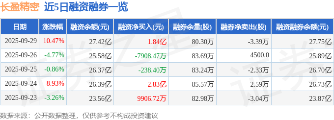 长盈精密融资融券信息显示,融资方面,当日融资买入10.1亿元,融资偿还8.26亿元,融资净买入1.84亿元,净买入额两市排名第19。融券方面,融券卖出1.43万股,融券偿还4.82万股,融券余量80.3万股,融券余额3329.24万元。融资融券余额27.75亿元。