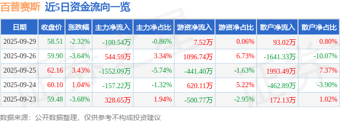 证券之星消息,截至2025年9月29日收盘,百普赛斯(301080)报收于58.51元,下跌2.32%,换手率1.58%,成交量2.0万手,成交额1.17亿元。