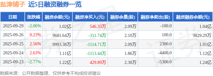 盐津铺子融资融券信息显示,融资方面,当日融资买入1358.16万元,融资偿还811.83万元,融资净买入546.33万元。融券方面,融券卖出100.0股,融券偿还200.0股,融券余量2.09万股,融券余额143.92万元。融资融券余额1.04亿元。