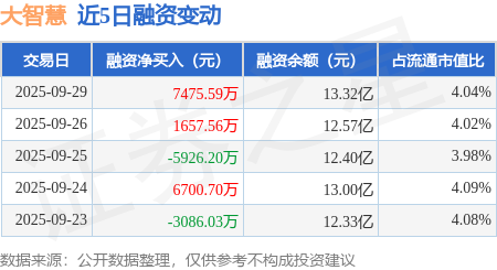 证券之星消息,9月29日,大智慧(601519)融资买入3.82亿元,融资偿还3.07亿元,融资净买入7475.59万元,融资余额13.32亿元,近20个交易日中有12个交易日出现融资净买入。