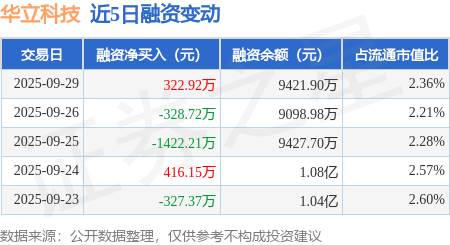 证券之星消息,9月29日,华立科技(301011)融资买入1419.81万元,融资偿还1096.89万元,融资净买入322.92万元,融资余额9421.9万元,近20个交易日中有11个交易日出现融资净买入。