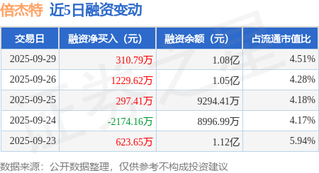 证券之星消息,9月29日,倍杰特(300774)融资买入2993.63万元,融资偿还2682.85万元,融资净买入310.79万元,融资余额1.08亿元,近3个交易日已连续净买入累计1837.82万元,近20个交易日中有13个交易日出现融资净买入。