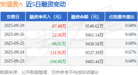 证券之星消息,9月29日,安道麦A(000553)融资买入273.61万元,融资偿还186.13万元,融资净买入87.48万元,融资余额9548.62万元,近20个交易日中有12个交易日出现融资净买入。