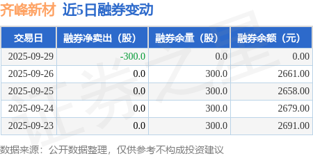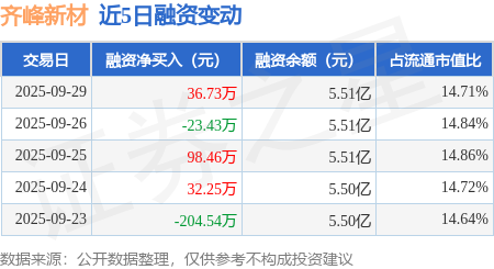 齐峰新材:9月29日融资买入1034.08万元,融资融券余额5.51亿元