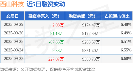 证券之星消息,9月29日,西山科技(688576)融资买入197.45万元,融资偿还195.37万元,融资净买入2.08万元,融资余额9174.47万元。