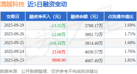 证券之星消息,9月29日,清越科技(688496)融资买入326.71万元,融资偿还340.26万元,融资净卖出13.55万元,融资余额3788.17万元。