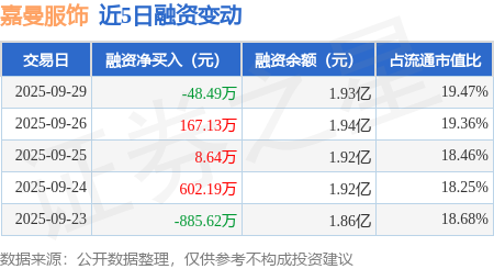 证券之星消息,9月29日,嘉曼服饰(301276)融资买入302.43万元,融资偿还350.91万元,融资净卖出48.49万元,融资余额1.93亿元,近20个交易日中有12个交易日出现融资净买入。