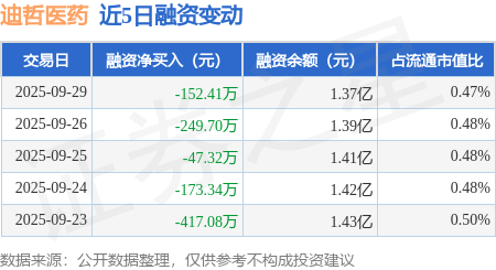 证券之星消息,9月29日,迪哲医药(688192)融资买入784.81万元,融资偿还937.22万元,融资净卖出152.41万元,融资余额1.37亿元。