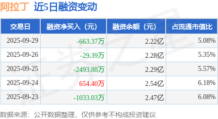 证券之星消息,9月29日,阿拉丁(688179)融资买入1040.57万元,融资偿还1703.94万元,融资净卖出663.37万元,融资余额2.22亿元。
