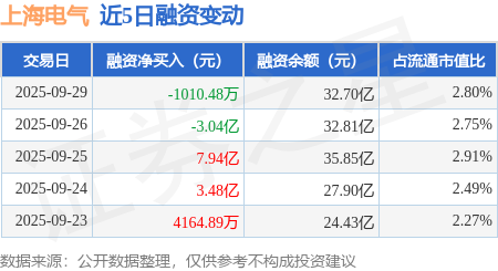 证券之星消息,9月29日,上海电气(601727)融资买入6.82亿元,融资偿还6.93亿元,融资净卖出1010.48万元,融资余额32.7亿元。
