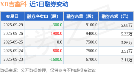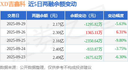 证券之星消息,9月29日,XD吉鑫科(601218)融资买入6275.41万元,融资偿还7571.58万元,融资净卖出1296.17万元,融资余额2.17亿元。