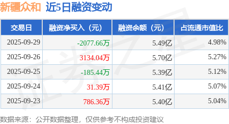 证券之星消息,9月29日,新疆众和(600888)融资买入5019.36万元,融资偿还7097.02万元,融资净卖出2077.66万元,融资余额5.49亿元,近20个交易日中有11个交易日出现融资净买入。