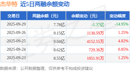 证券之星消息,9月29日,杰华特(688141)融资买入8299.11万元,融资偿还2.19亿元,融资净卖出1.36亿元,融资余额7.76亿元,近20个交易日中有14个交易日出现融资净买入。