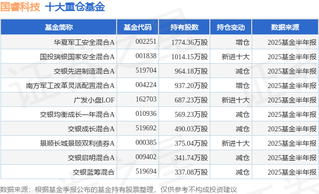 根据2025基金半年报公募基金重仓股数据,重仓该股的公募基金共51家,其中持有数量最多的公募基金为华夏基金的华夏军工安全混合A。华夏军工安全混合A目前规模为44.86亿元,最新净值1.792(9月29日),较上一交易日上涨1.01%,近一年上涨46.41%。该公募基金现任基金经理为万方方。