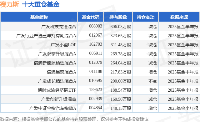 重仓赛力斯的前十大公募基金请见下表: