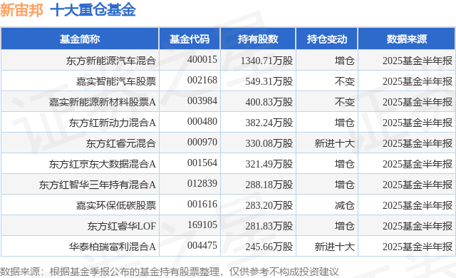 根据2025基金半年报公募基金重仓股数据,重仓该股的公募基金共62家,其中持有数量最多的公募基金为东方基金的东方新能源汽车混合。东方新能源汽车混合目前规模为78.58亿元,最新净值3.0037(9月29日),较上一交易日上涨5.38%,近一年上涨69.89%。该公募基金现任基金经理为李瑞。李瑞在任的基金产品包括:东方汽车产业趋势混合A,管理时间为2022年2月9日至今,期间收益率为-0.75%;东方高端制造混合A,管理时间为2023年3月1日至今,期间收益率为-7.98%;东方低碳经济混合A,管理时间为2025年3月4日至今,期间收益率为11.87%。