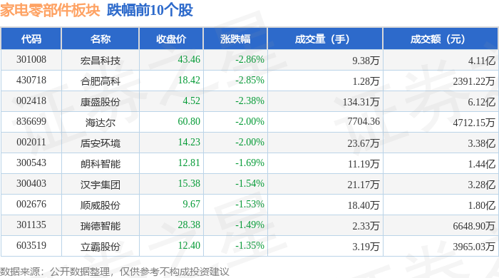 从资金流向上来看,当日家电零部件板块主力资金净流出2060.82万元,游资资金净流入1466.78万元,散户资金净流入594.04万元。家电零部件板块个股资金流向见下表: