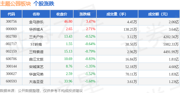从资金流向上来看,当日主题公园板块主力资金净流出1.09亿元,游资资金净流入6972.93万元,散户资金净流入3974.14万元。主题公园板块个股资金流向见下表: