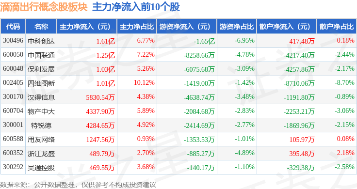 从资金流向上来看,当日滴滴出行概念股板块主力资金净流入5.66亿元,游资资金净流出4.27亿元,散户资金净流出1.39亿元。滴滴出行概念股板块个股资金流向见下表: