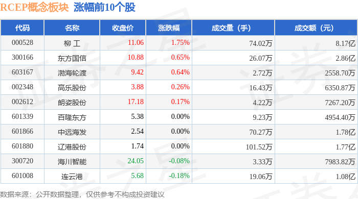 从资金流向上来看,当日RCEP概念板块主力资金净流出1.5亿元,游资资金净流出5440.3万元,散户资金净流入2.05亿元。RCEP概念板块个股资金流向见下表: