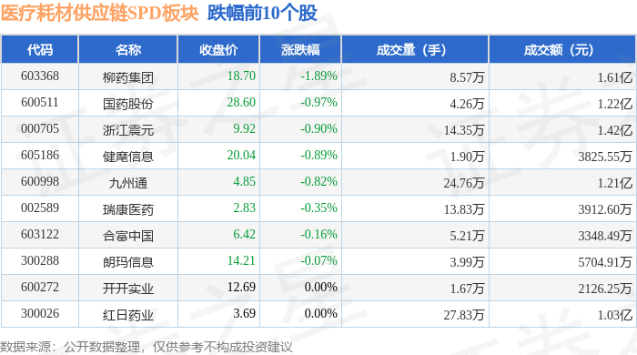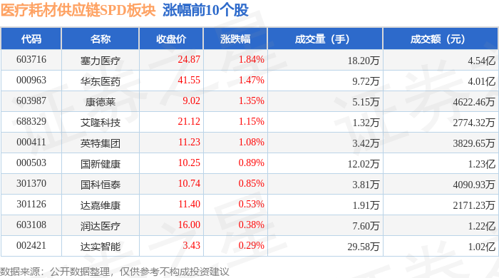 证券之星消息,9月30日医疗耗材供应链SPD板块较上一交易日上涨0.42%,塞力医疗领涨。当日上证指数报收于3882.78,上涨0.52%。深证成指报收于13526.51,上涨0.35%。医疗耗材供应链SPD板块个股涨跌见下表: