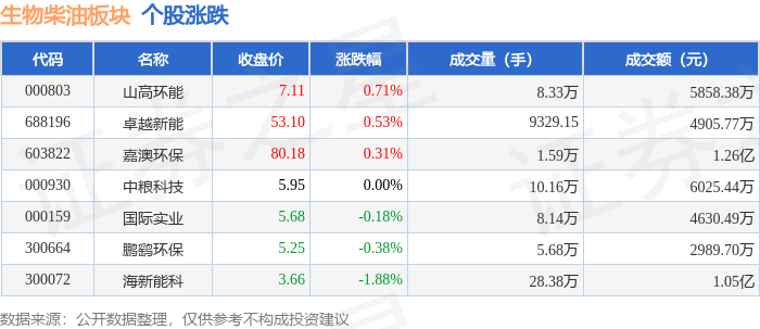 证券之星消息,9月30日生物柴油板块较上一交易日下跌0.25%,海新能科领跌。当日上证指数报收于3882.78,上涨0.52%。深证成指报收于13526.51,上涨0.35%。生物柴油板块个股涨跌见下表:
