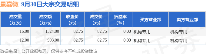 证券之星消息,9月30日景嘉微发生大宗交易,交易数据如下: