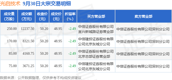 证券之星消息,9月30日光启技术发生大宗交易,交易数据如下: