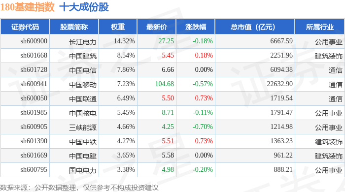 180基建(000025)指数十大成份股详情如下: