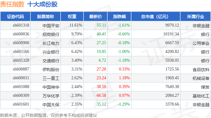 证券之星消息,9月30日,责任指数(000048)报收于1424.73点,涨0.02%,成交762.76亿元,换手率0.86%。当日该指数成份股中,上涨的有57家,中国中冶以10.0%的涨幅领涨,下跌的有39家,吉比特以3.43%的跌幅领跌。